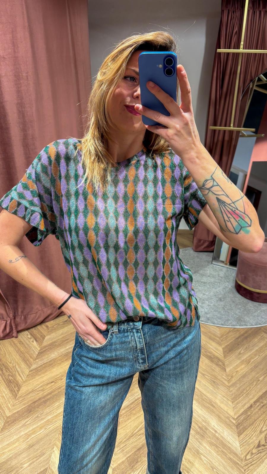 ✨ lavorazione jacquard con motivo grafico che eleva subito anche l’outfit più semplice