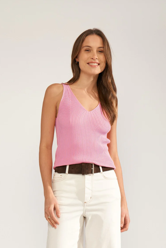 Top Nucerys a costine con scollo V fronte/retro – Numph