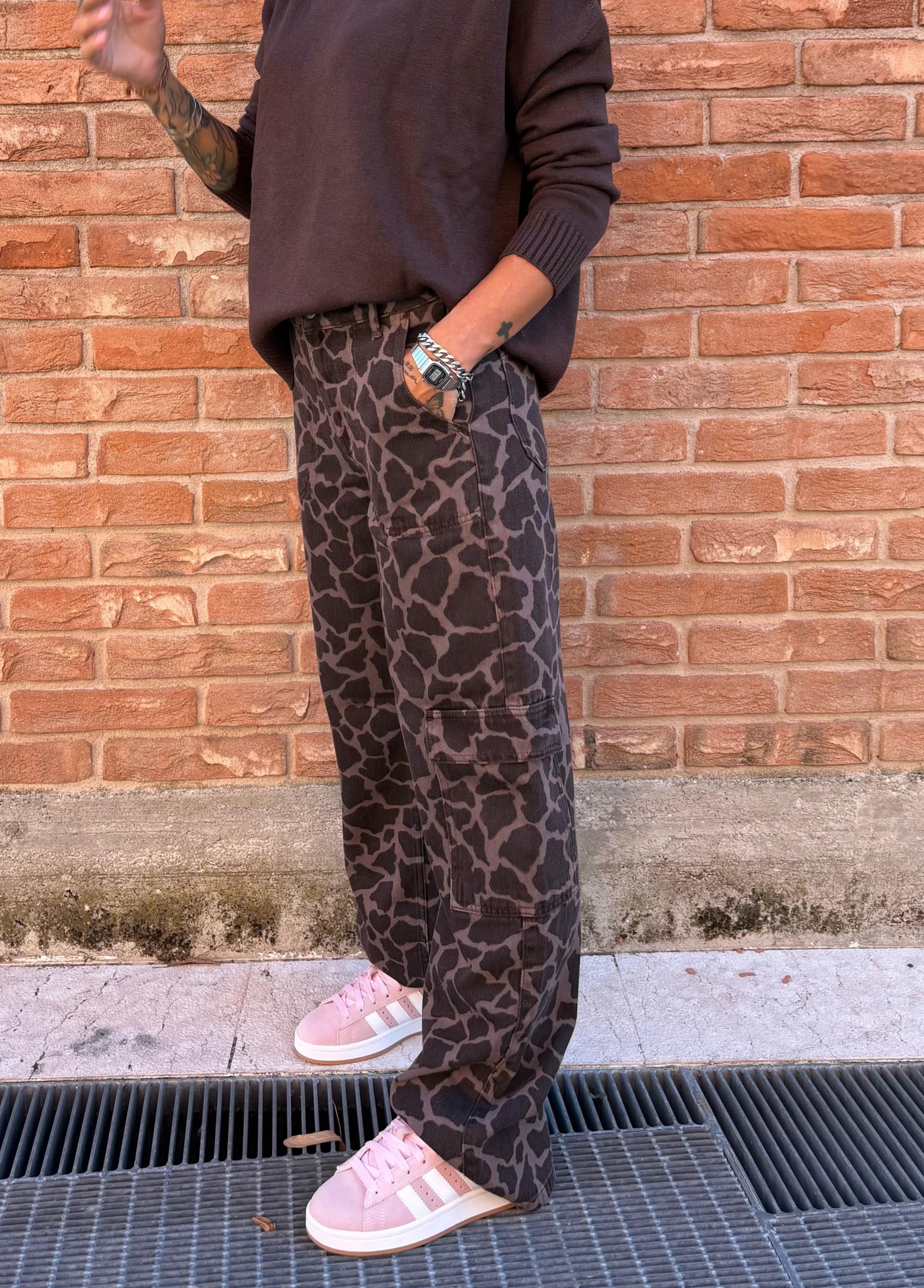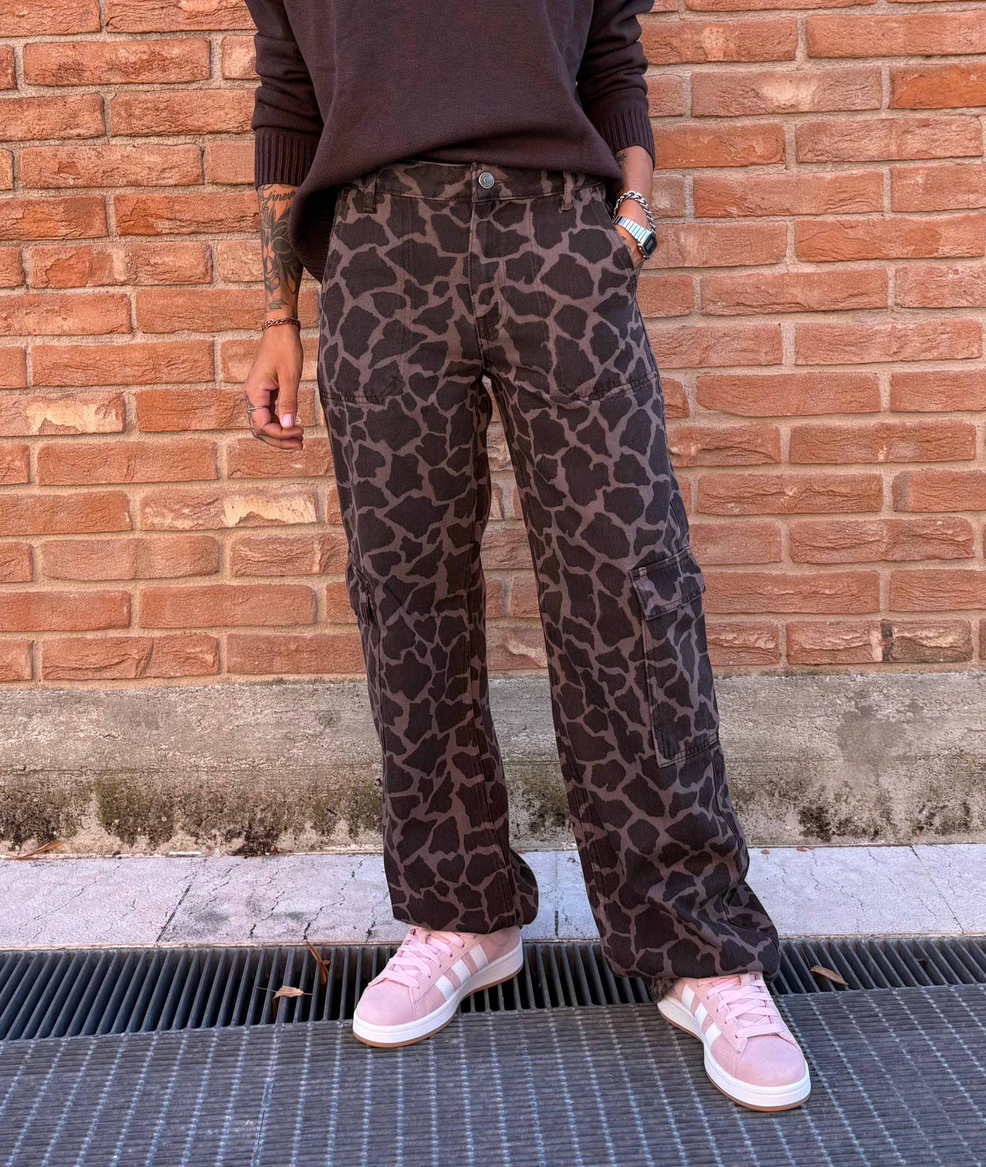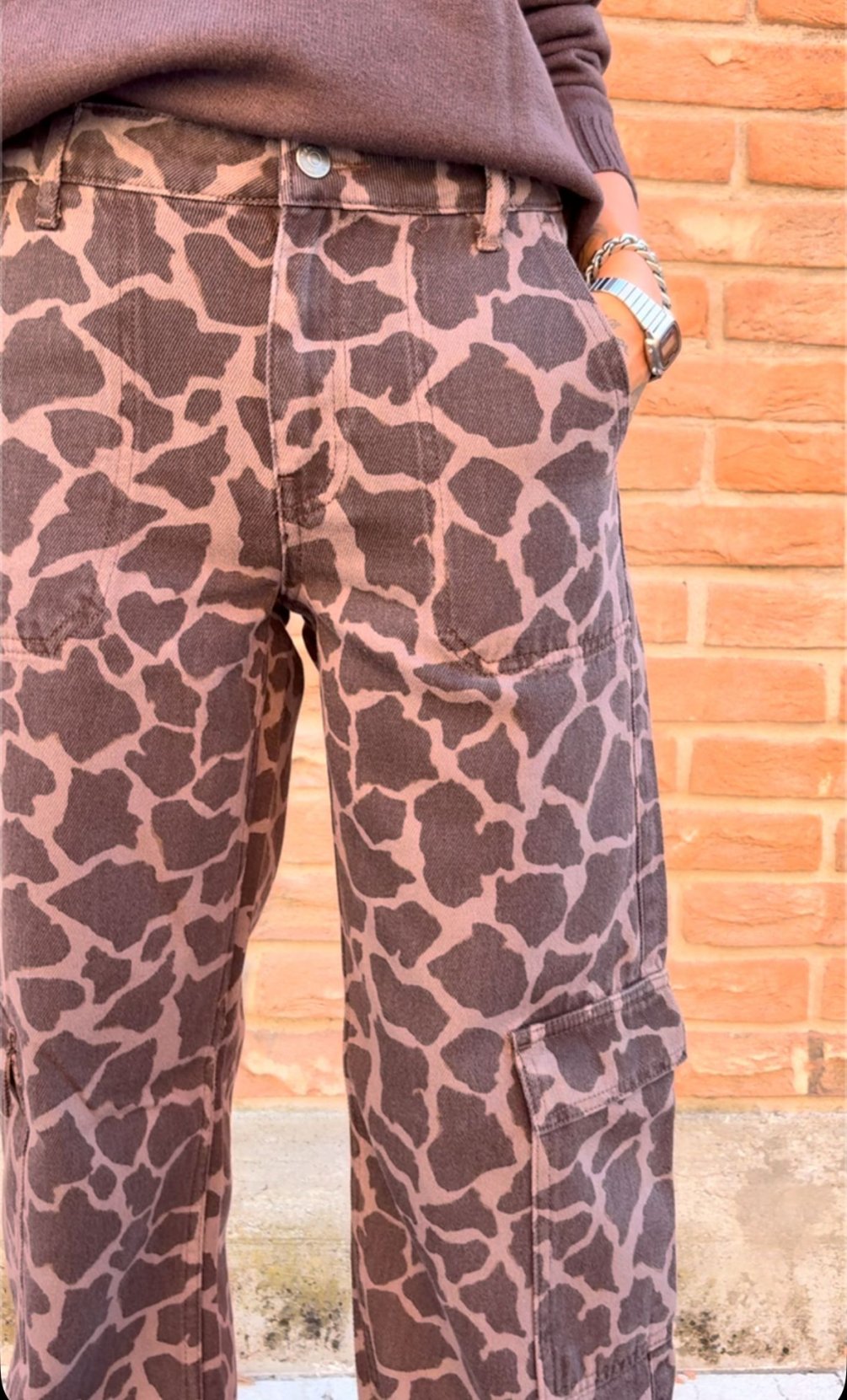 Non il solito animalier: il pantalone Nuharu muccato è la stampa più cool della stagione.