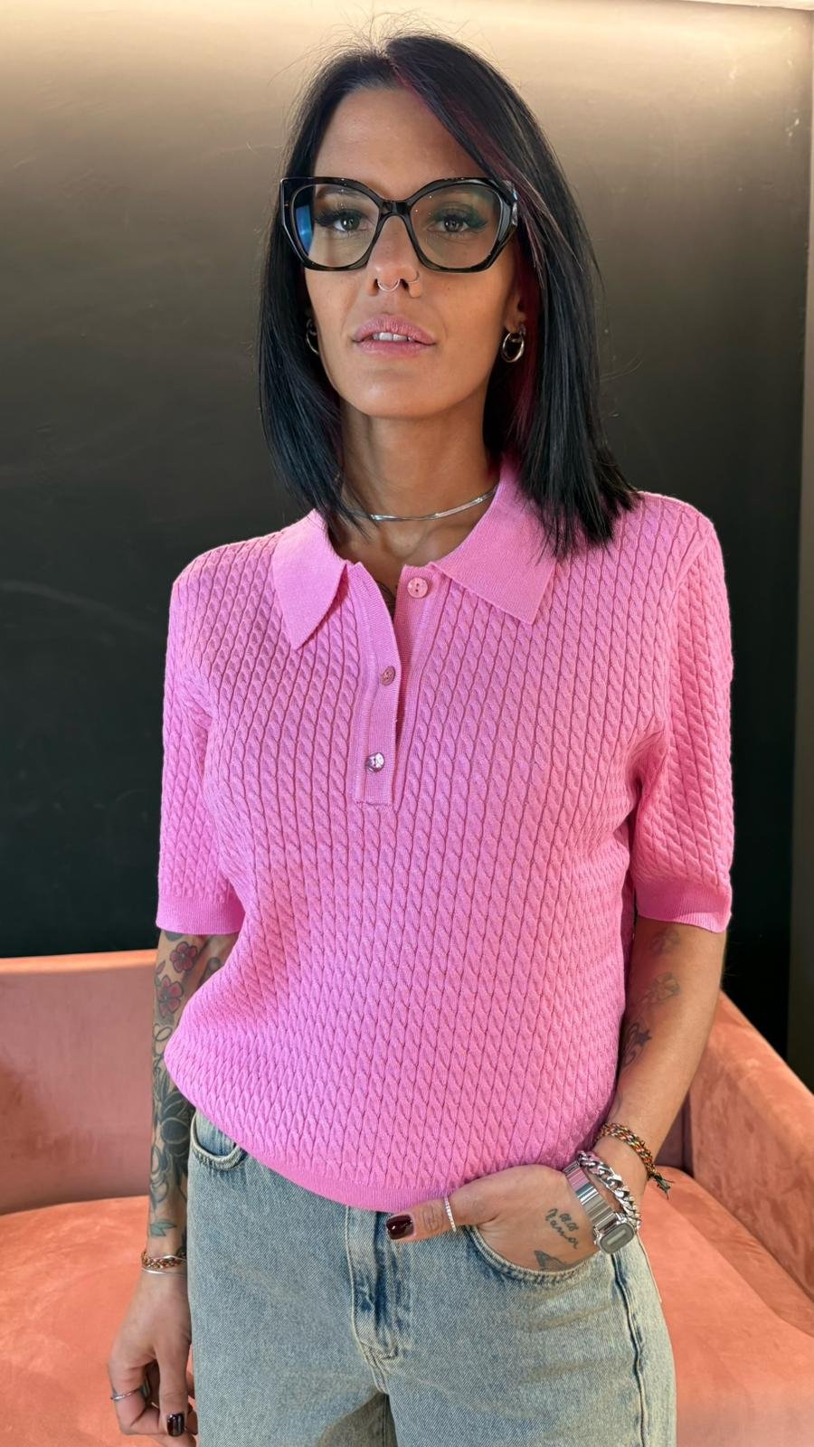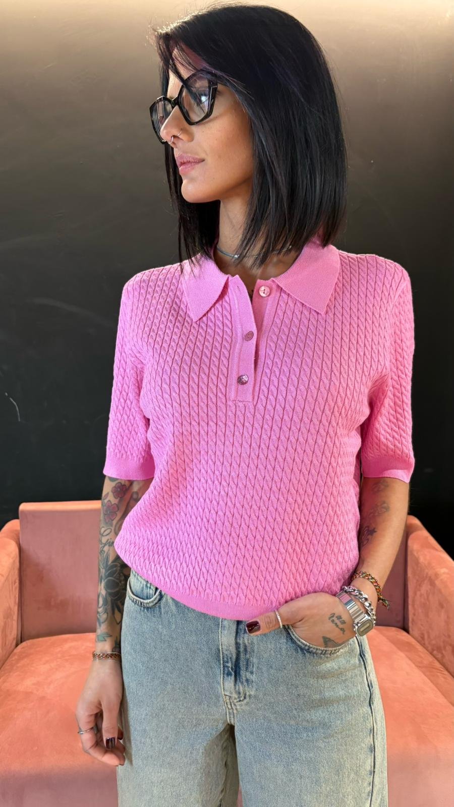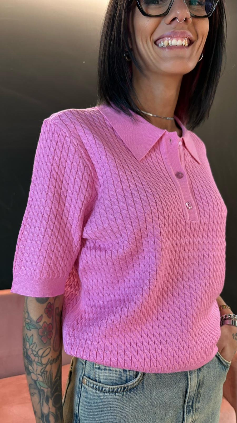 Polo Rosa in maglia lavorata - Rosa