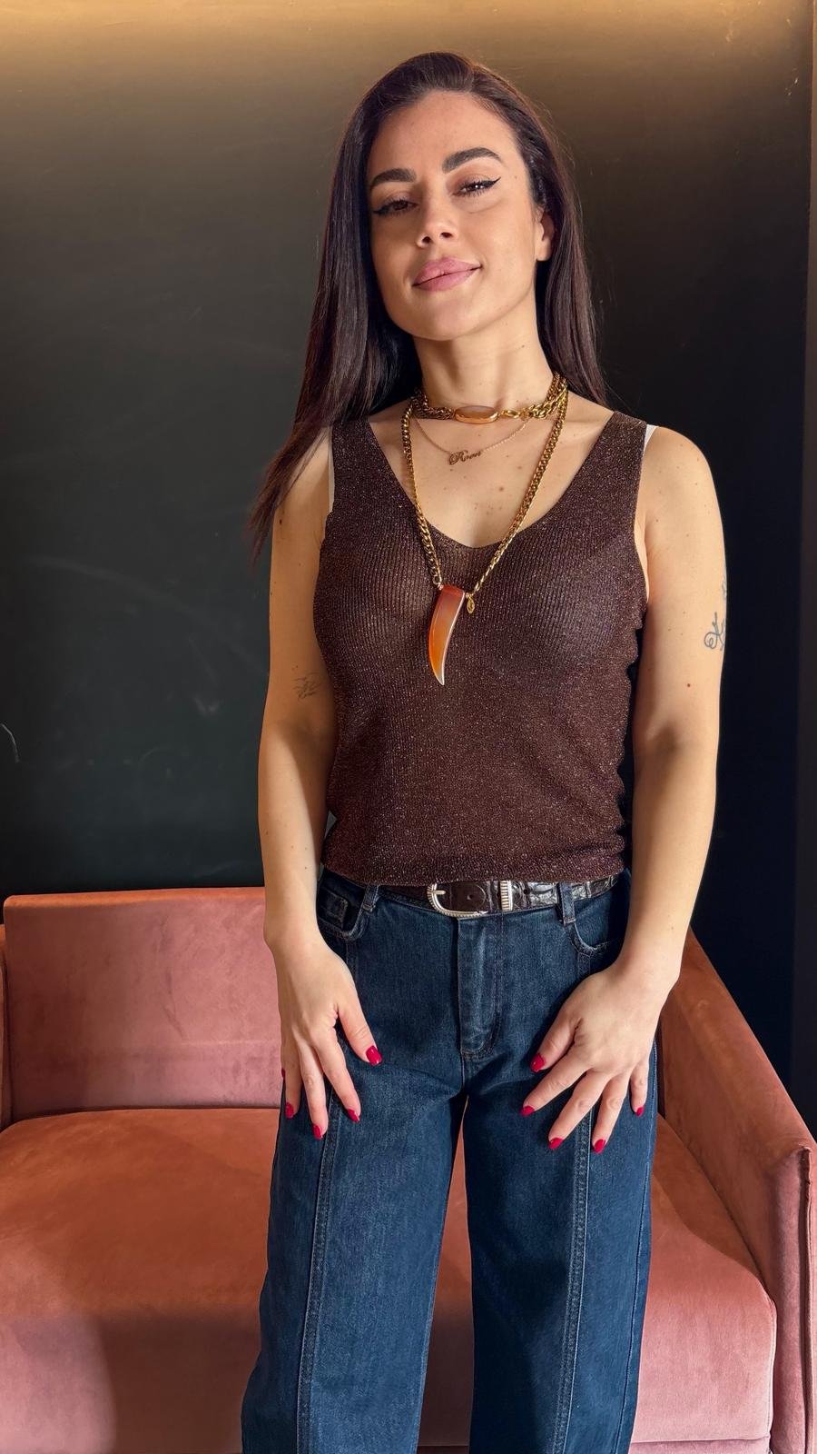 Top lurex Brown in viscosa elasticizzata – Nümph